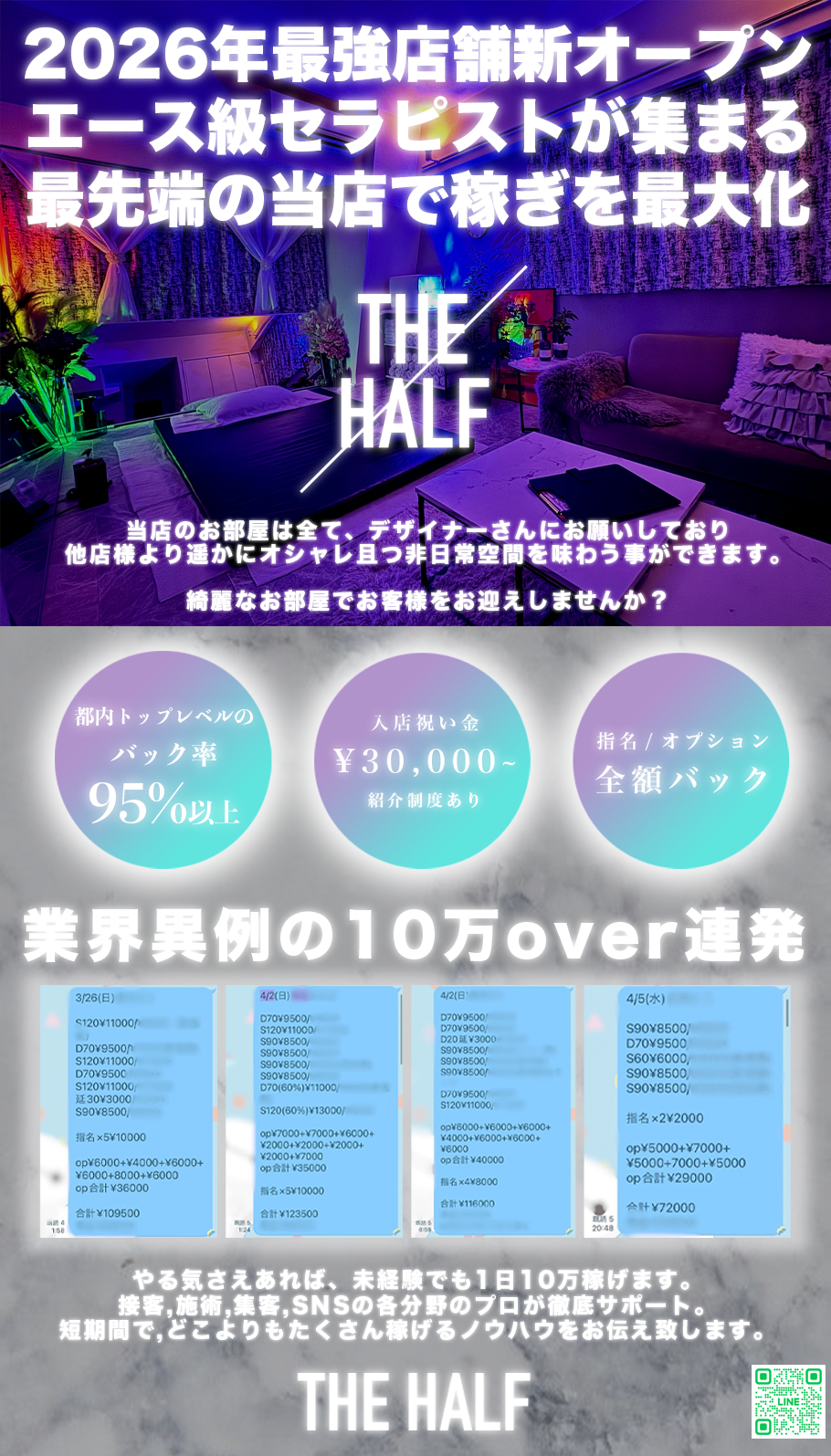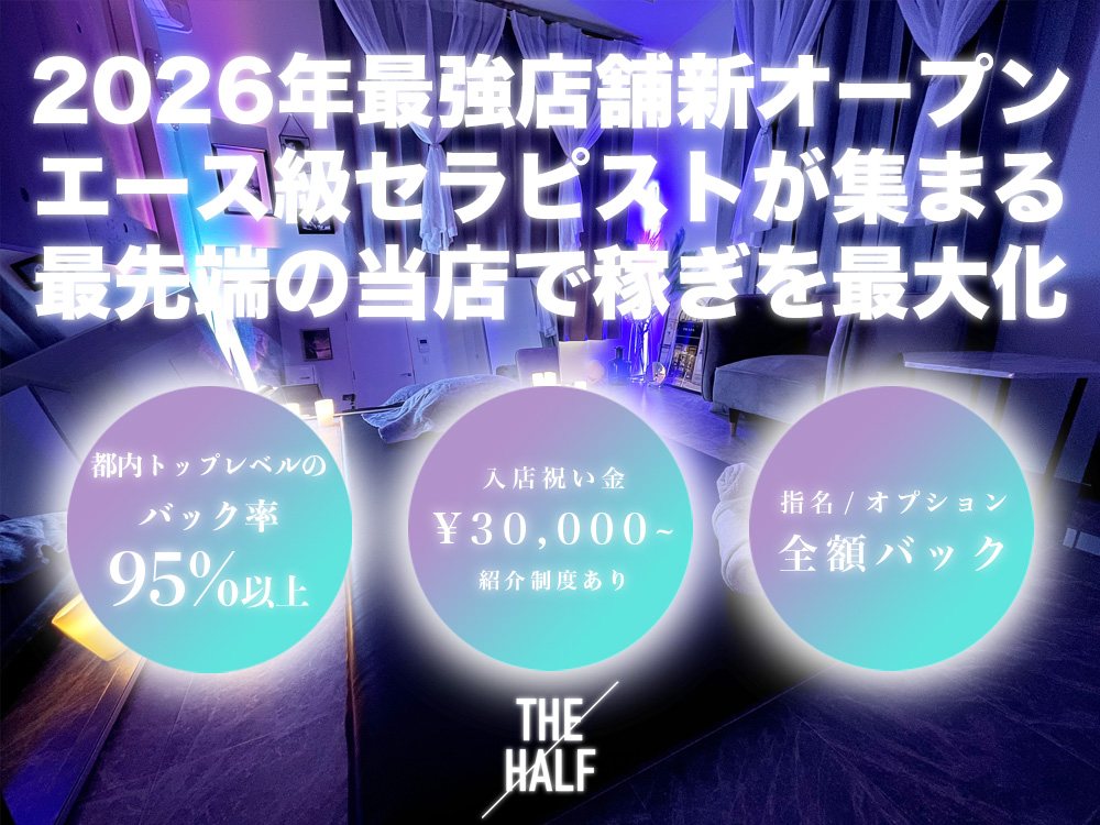 メンズエステTHE HALFは、完全予約制、完全個室のリラクゼーションサロンです。