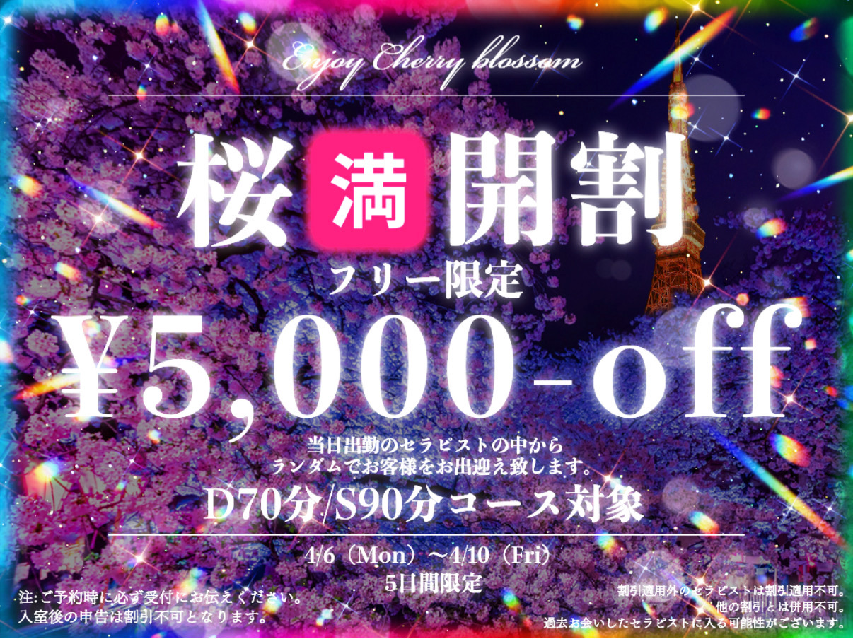 🫧🌸来る春、THE HALFで 心に満開の桜を🌸🫧 🍡桜🈵開割‼️開催致します🍡 🌸🩷💛💙💜🌸🩷💛💙💜 4/6(月)〜4/10(金) 5日間限定で フリー限定¥5,000🈹を 実施致しま… -